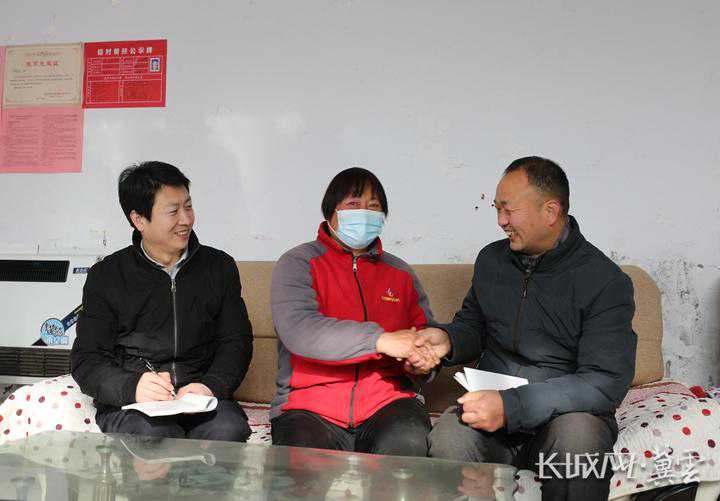 临城县乡村振兴局工作人员(左)和沟里韩村防贫监测网格员在侯建霞(中)家了解情况。长城网·冀云客户端记者贾宏博摄