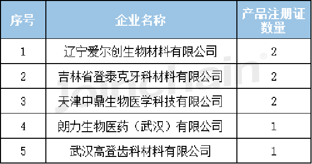 据MDCLOUD(医械数据云)统计,可生产酸蚀剂的生产企业中,辽宁爱尔创生物材料有限公司的有效产品数量排名第一,有2件。