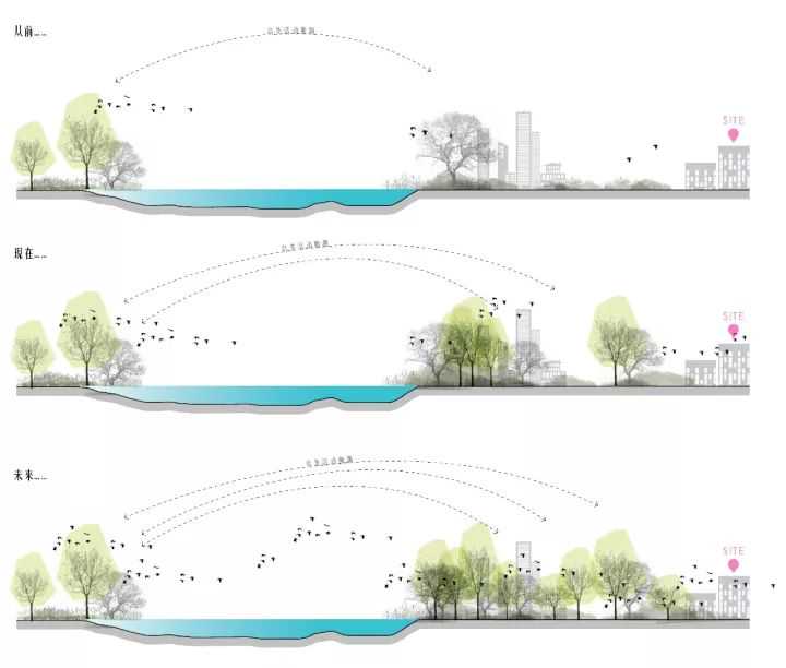 以植被种植引导鸟类活动轨迹,形成內外环境动植物之间的良性循环。
