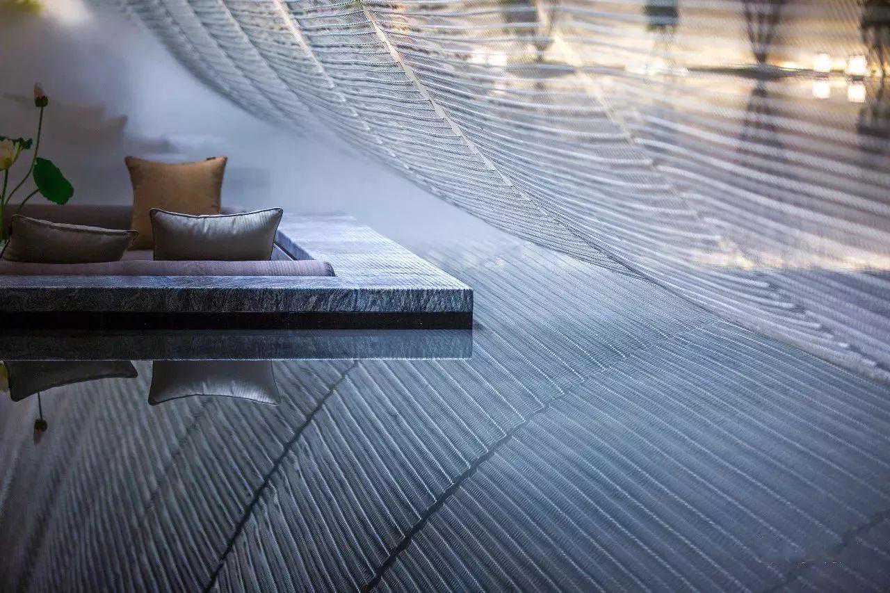 由于北方冬季气候寒冷干燥,我们利用特殊材质铺装降低用水要求,夏季是流水潺潺,冬季将水放干却又是另一番别致景象,各种材质与流水的韵律在自然空间中相互渗透,勾勒出整个空间的灵动性。