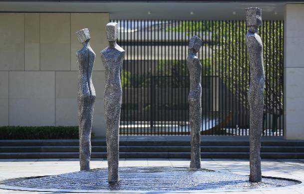 我们选择镂空的铁艺屏风将景观空间进行分隔,从而打造最适宜的立面尺度,丰富空间层次感。在建筑前利用水景与艺术小品增添空间趣味与灵动,而其造型皆提取至花朵、树叶、动物等自然的元素,每一处细节都是设计师们向大自然的致敬。