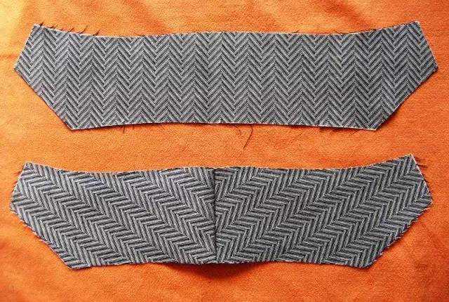 然后剪下净领衬就可以了。这样剪裁的领衬,不容易错位的。