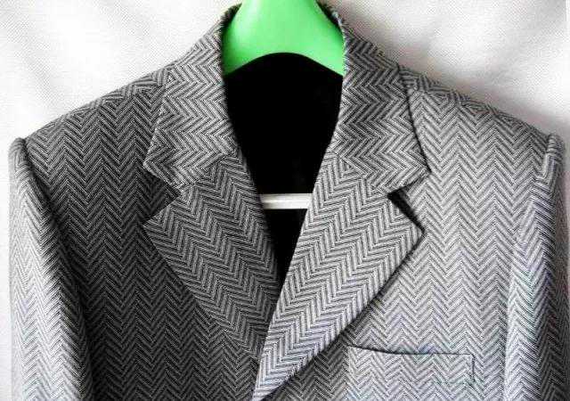 西服领衬剪裁:领面横裁,领底45°斜裁,西服领衬用薄领衬。