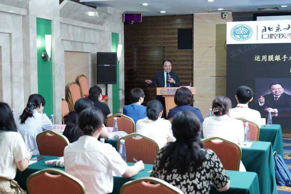 在青岛市口腔医学会牙周病学专委会的学术年会上,北京大学口腔医院副院长、全国牙周病学权威专家胡文杰教授进行现场理论授课。胡文杰教授以“运用膜龈手术改善种植体周软组织条件”为题,深入浅出,生动幽默的阐述了通过改善牙龈软组织来治疗天然牙及种植牙健康状态的各种技巧方法,并勉励诸位医生要不断扩展自己的技术水平,在熟练开展牙周病基础治疗的基础上,逐步掌握牙周炎的多学科联合诊疗方式,顺应国内牙周病学专业的发展趋势并与国际先进水平接轨。