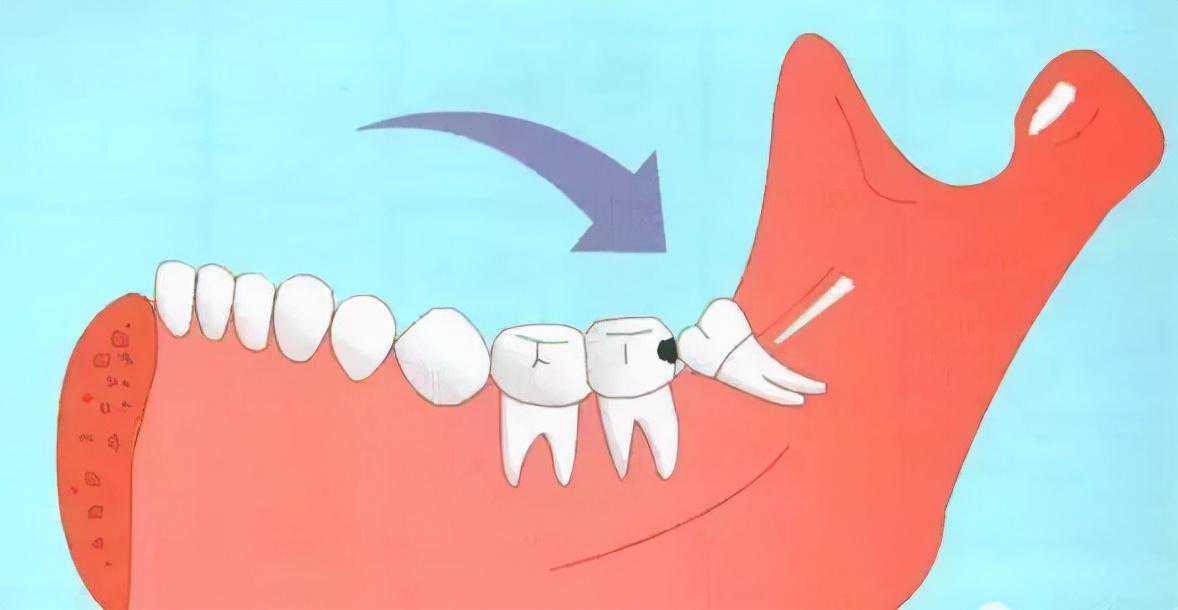 2、龋齿:智齿与前一颗牙齿之间常食物嵌塞(吃东西塞牙)或清洁不易导致本身龋坏或者相邻的第二磨牙龋坏;除了很简单的咬合面不深的蛀牙可以补,其他的一律建议拔出。