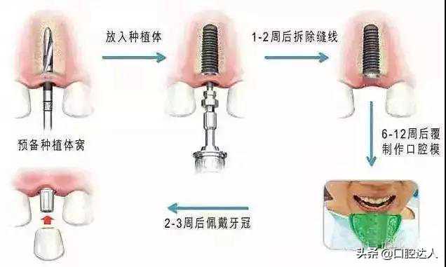 (1)术前准备阶段。如拔掉残根、龋齿、治疗牙周病及去除不良假牙、调改和纠正不良咬合关系等。这个阶段所需时间视各人治疗情况不同而异,少则1、2天,多则2、3月。