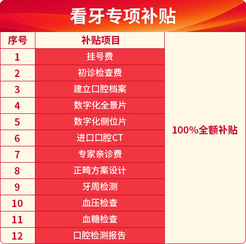 ●此次惠民医疗,为缺牙人士提供未纳入医保报销范围的看牙额外补贴。