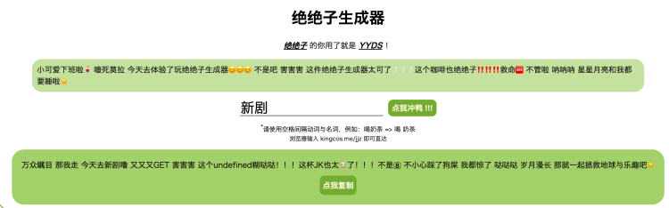 打开这个网站,输入“新剧”一词,我得到了以下一段“绝绝子文体”: