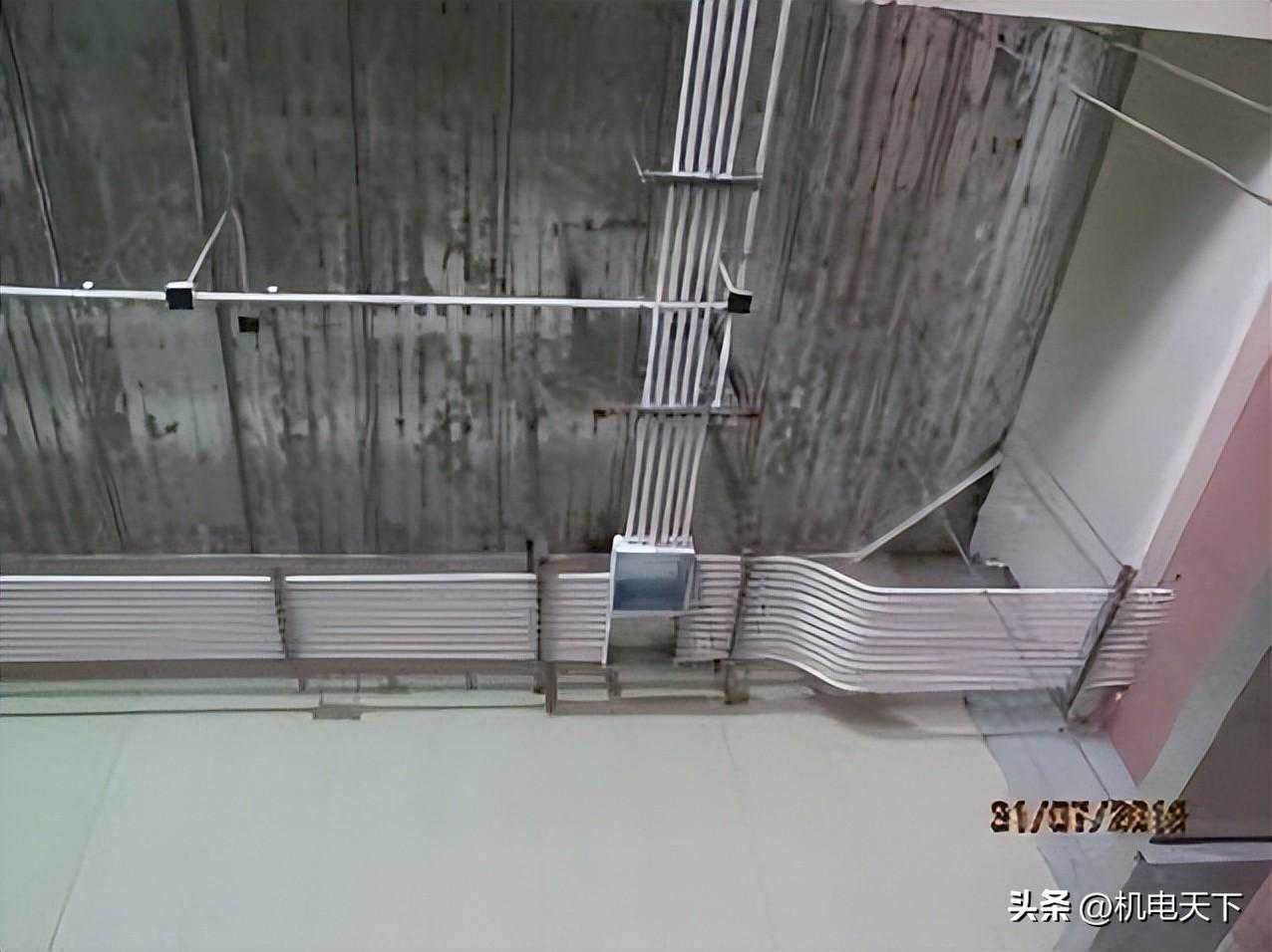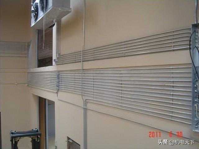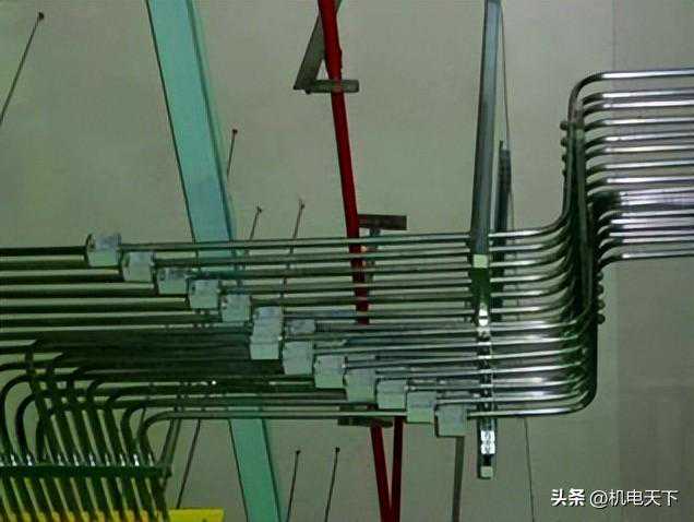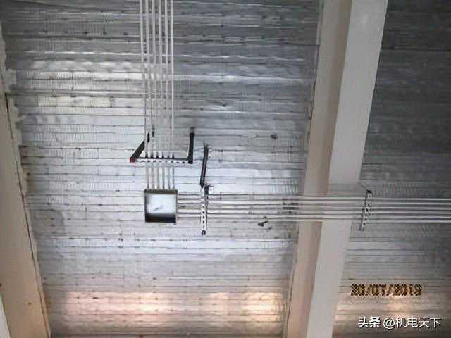 要求:线管沿金属复合板顶敷设时,应排列整齐、布局合理、横平竖直、间距均等、固定牢固、整齐美观。16-20mm线管固定点间距为1.0m;在吊顶内固定间距可增大至1.5m。25-32mm为1.5m;线管固定点与弯头中点、过线盒、终端盒、箱边缘的间距为150~300mm。线管水平或垂直明敷设时,其水平度、平行度、垂直度的允许偏差为1.5‰,全长偏差不应大于管内径的1/2。