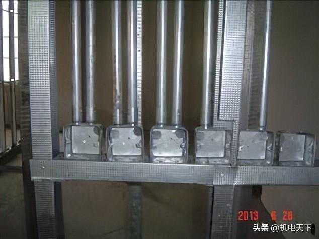 要求:线管在轻质隔墙内敷设时,应排列整齐水平、间距一致,线管穿龙骨处应开孔穿过。