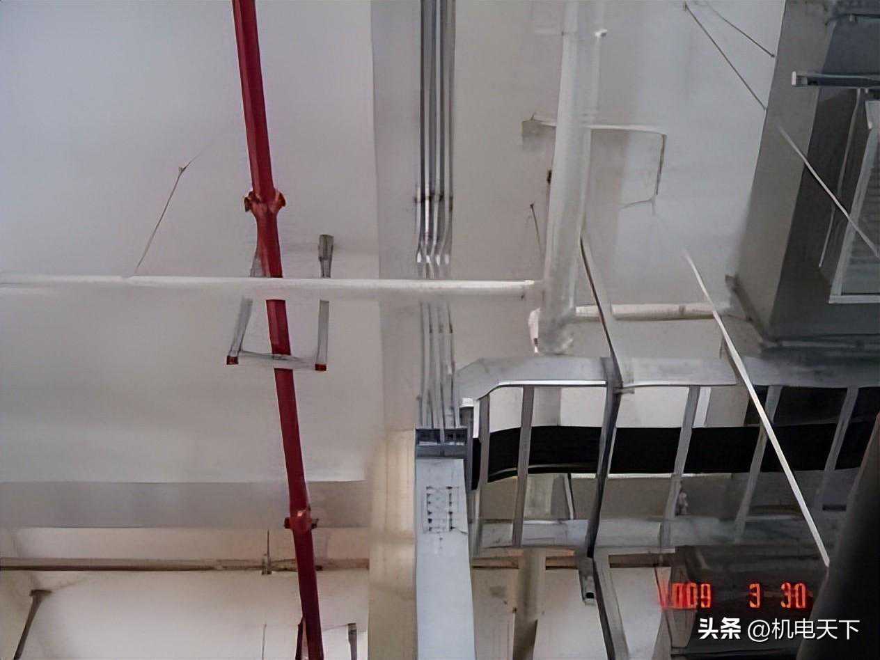 要求:线管沿混凝土顶支吊架敷设时,线管弯曲处不应有褶皱、凹陷、裂纹等缺陷。其弯扁程度,不应大于管外径的10%。线管弯曲半径不应小于管外径的6倍。16-20mm线管固定点间距为1.0m,线盒距固定点为150~300mm。