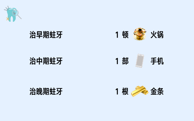 如果在蛀牙刚刚开始的时候去处理,只要一顿火锅钱就够了(200~300)。