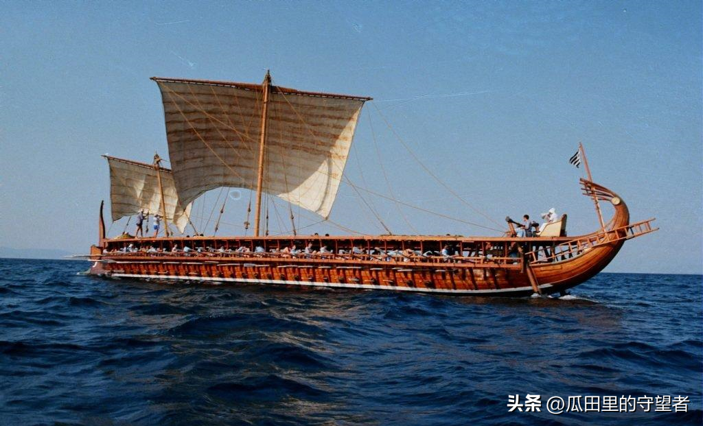 15这是一艘170桨的三桅战船的全尺寸复制品,名为奥林匹亚斯号,是公元前5世纪雅典三桅战船的复制品。这艘船属于希腊海军,在1985年和1987年之间建造。它们的最大航速是8节,如果在良好的风力条件下使用帆,航速可以提高到10节。他们的船员由170-200人组成,都是自由公民。