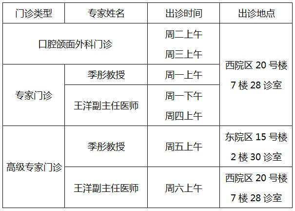高级专家门诊:周六上午,西院区20号楼7楼28诊室