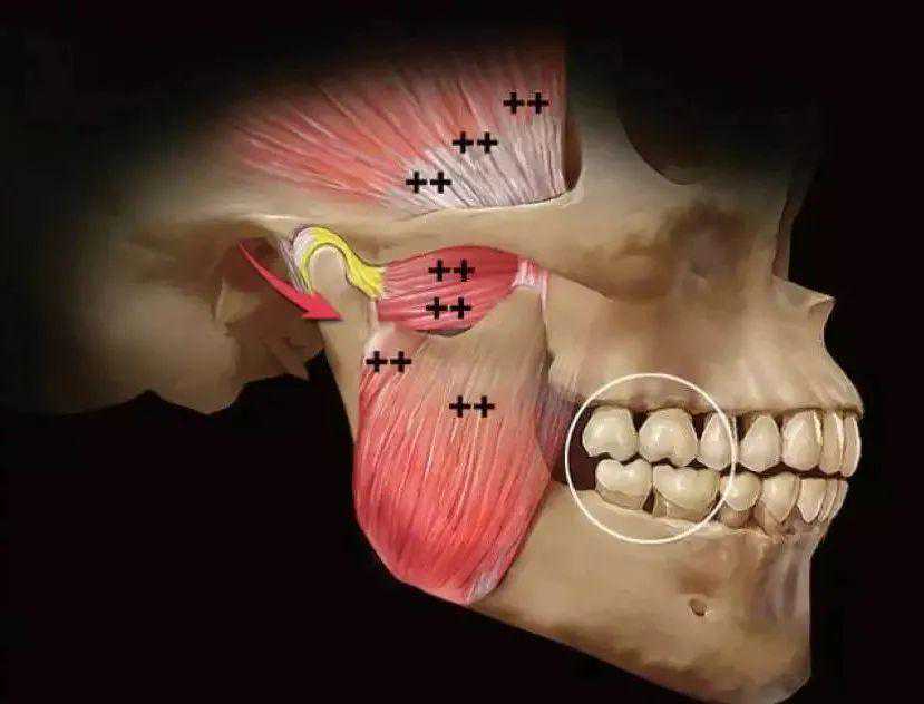 (4)咬合异常后肌肉张力的不平衡导致肌肉疲劳、髁突后移,关节区会感到不适,甚至出现疼痛、张不开口、关节弹响等症状,即“颞下颌关节紊乱病”。一旦发生,完全治愈有困难。