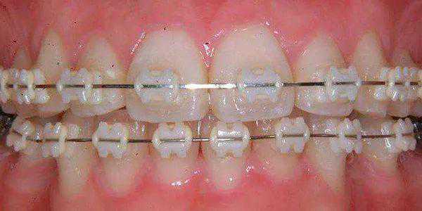 陶瓷托槽是金属双翼托槽的透明版,具有和天然牙相近的色泽。它的优点是,美观性较好,粘接较金属托槽更牢固,治疗中不容易脱落。但是需要注意的是,咬硬物及受力过大时托槽会碎裂,牙齿移动过程中摩擦力比金属托槽大,移动速度相对较慢。