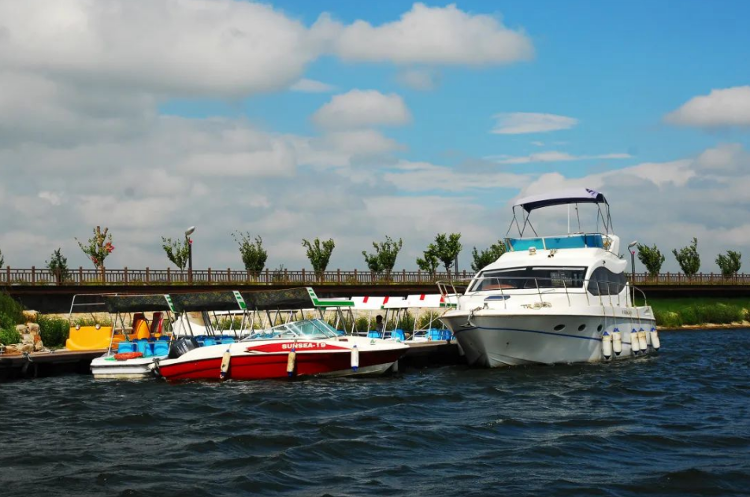 一湾碧水,波光粼粼,群山环抱,峰回路转。湖水溪流带着温润的清风和淙淙的水声飘入怀中,让大自然的音容和人一起融化在田园山野的诗意之中,尽享大自然的恩赐。万紫千红生态养生旅游区位于济宁市、泗水县、泗张镇,交通便利,距离日兰高速泉林出口仅200米。万紫千红以1300亩青界湖为核心,设有豪华游艇、钓鱼艇、小快艇、观光电瓶船、皮划艇等。运气好的时候,泛舟湖面,空中有白鹭、灰鹭盘旋,水面上有野鸭在嬉戏,那是一幅十分美丽的画面。