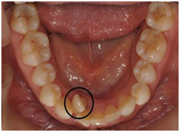 上面两张照片里圈出来的牙齿就是俗称的“虎牙”,他其实是异位萌出的尖牙,它的出现与牙齿的萌出顺序以及牙齿排列的拥挤程度有关。尖牙往往是最后萌出的牙齿,牙齿排列越拥挤,尖牙成为“老虎牙”的几率也就越大。“虎牙”的存在不但影响美观,还不能有效发挥尖牙的撕扯功能,咀嚼过程中还可能咬伤嘴唇。