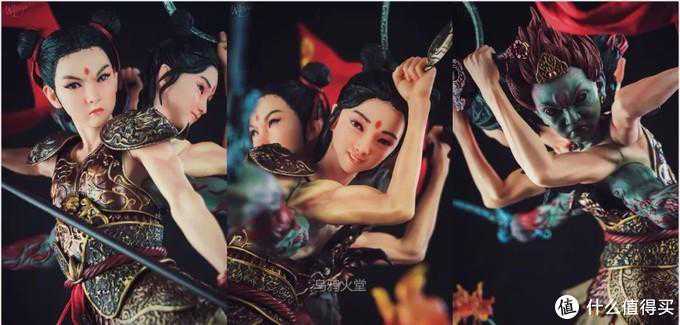 有意思的是,如今越来越多的作品,对哪吒三个头开始做文章,哪吒不同的面相和身份,三头各表现一种,乃是主流。比如天开工作室的1/4哪吒雕像,三个头分别是:愤怒、女相、罗刹。正好代表了在大众心中的三种特色。