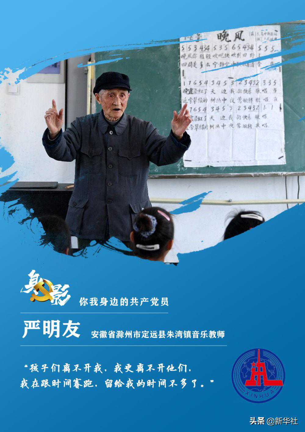 △严明友在安徽省定远县朱湾小学音乐教室里教孩子们唱歌(3月23日摄)。1953年,严明友回到家乡安徽省定远县朱湾镇,在多所农村学校任教。1990年,在乡村教师岗位上耕耘近40年的严明友退休。考虑到乡村中小学缺乏专职音乐老师,本应安享晚年的严明友,重返讲台,义务为多所乡村学校学生上音乐课,一晃就是30多年。