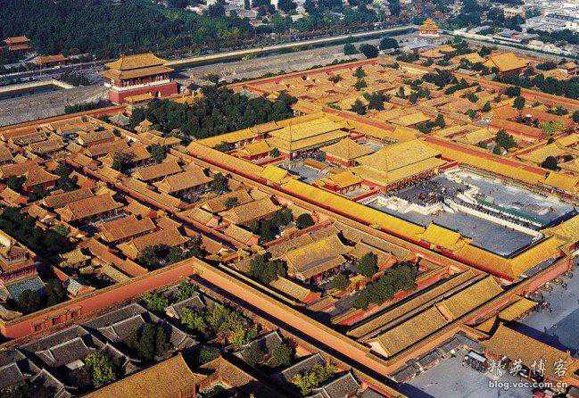 皇家属中央土,按照周易五行原理,土为黄色,古人认为黄色为正色,为尊贵之色,所以皇家建筑都用黄色,黄色是皇家建筑的专用颜色。从高处看皇宫简直是一片金碧辉煌的世界