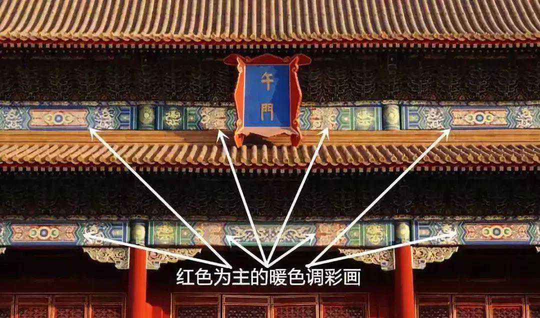 而故宫高高的宫墙、城门的墩台、宫殿的明柱、门窗大都使用红色,因为中国自古以来都将红色看作吉祥、喜庆、美满、幸福的象征,此外红色为火,火生土,皇宫用红色饰墙是为了火生土,红色作为权力从中国古代沿用下来至今。