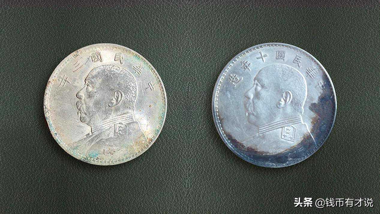 首先体现在,在三年大头的正面,袁世凯像胸前七点钟方向的地方缺少一个细内齿。这或许是雕刻师为了防止某些有心之人伪造专门留下的细小标记,也可能是雕刻师内齿计算失误,导致空间不足以正好放下那一个细齿,具体是为什么如今已没有详实的说法流传了。(注:甘肃版除外)