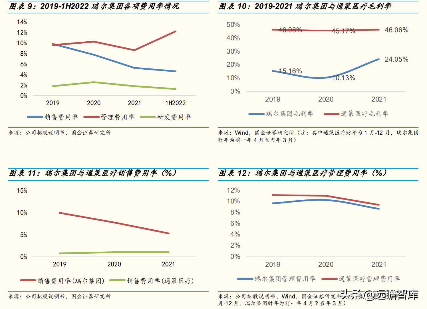 与通策医疗的销售费用率稳定在1%以下的水平相比,公司2021年销售费用率在5.2%,主要系通策医疗目前合并报表以浙江省内医院为主,公司已经在浙江省内建立了较高的口碑和影响力,因此销售费用率较低。