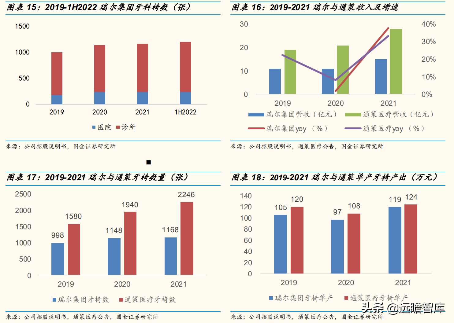 从公司在重庆的战略并购模式上看,公司于2015年通过收购10家诊所进军重庆市场,随后开设1间瑞泰医院及6家瑞泰诊所,自此公司的重庆收入大幅增长,2016至2021年收入年复合增长率为35%,牙椅数量已由80张增至217张。