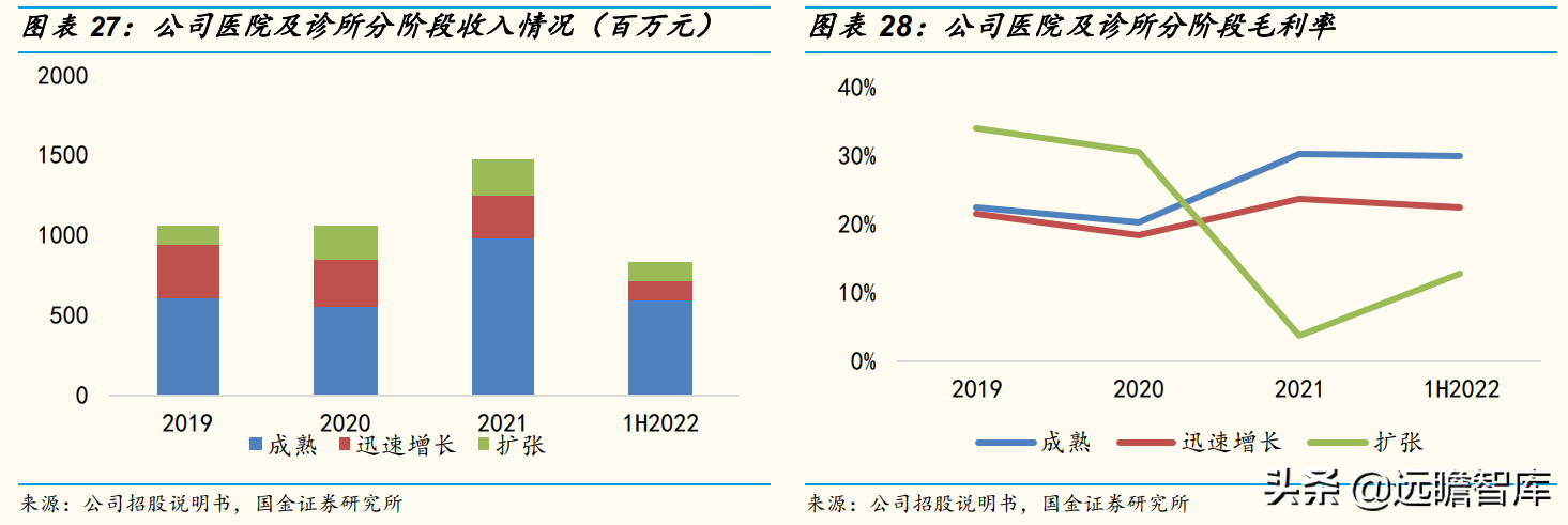 截至1H2022,公司共有24家处于正在扩张、25家迅速增长及58家处于成熟阶段的医院和诊所,成熟阶段的门店数量占比首次超过50%。