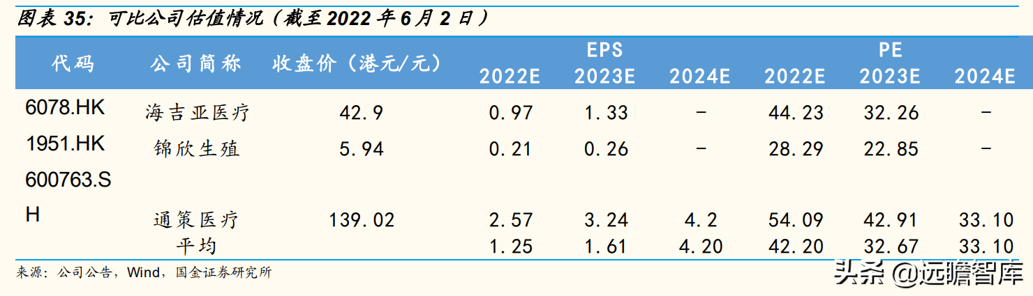 考虑到公司属于国内高端口腔医疗服务的先驱,我们选取海吉亚医疗、锦欣生殖和通策医疗作为可比公司,选取Wind一致预测作为参考。