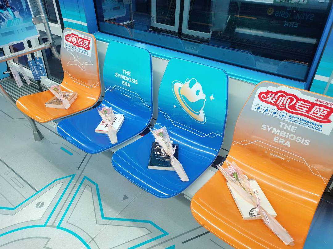 “在我们精心打造的‘书’式列车上,放着由员工挑选的图书及不同岗位员工的内心独白,乘客可以在列车上传递、阅读或带走这些图书,同时乘客也可以留下自己的图书,让这份善意在轨道交通上‘漂流’。”活动相关负责人说道。