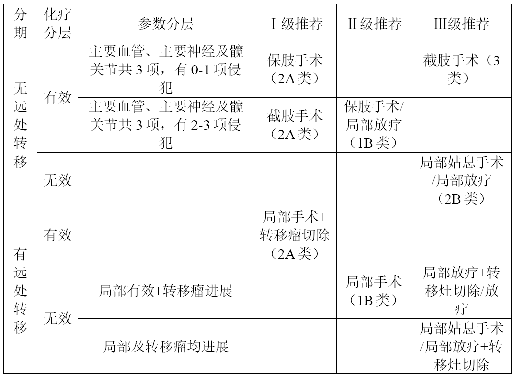 2023年CSCO骨与软组织肿瘤指南相较于此前版本,新增骨盆骨肉瘤的外科治疗分层选择(详见下表)。