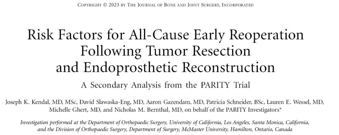 [13]KalJK,Slawaska-EngD,GazamA,ndoprostheticReconstruction:ASecondaryAnalysisfromthePARITYTrial[J].JBoneJointSurgAm,2023,105(Suppl1):4-9.