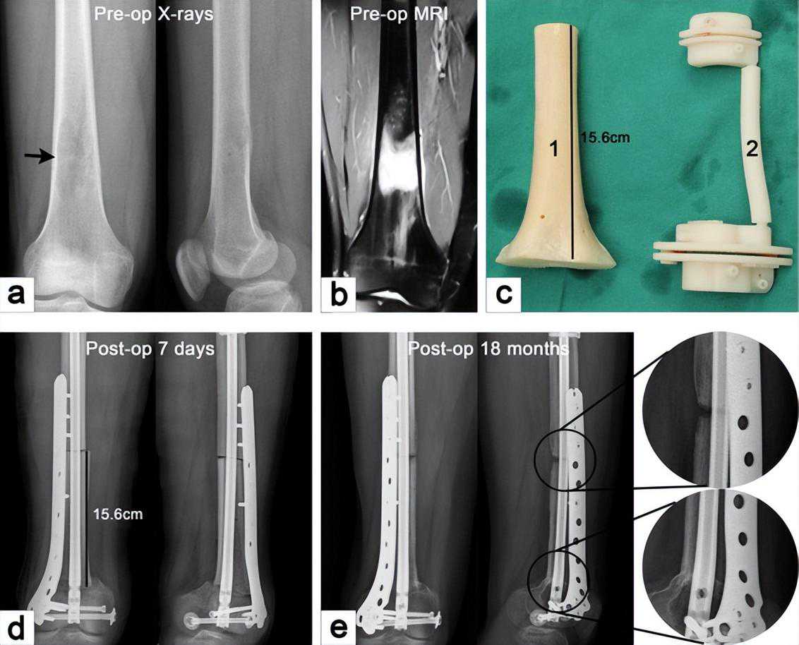 四肢骨骼是良、恶性骨肿瘤的常见部位,恶性骨肿瘤切除后造成的大范围缺损会显著影响肢体功能以及生活质量。因此,在进行肿瘤切除的同时,重建肢体功能成为临床治疗的关键。为了恢复患者的生活质量和功能,研究人员一直在探索各种生物重建技术以及假体植入物机械重建,以重建大范围骨缺损,使患者能够恢复正常的步态和功能。骨缺损的重建也是目前骨与软组织肿瘤领域内的研究热点。