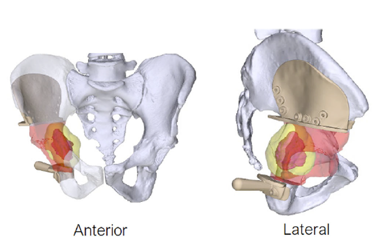 骨盆也是骨肿瘤的好发部位之一,然而由于骨盆手术的位置特殊、手术难度大,2023相关文献报道较少。Zhang[67]对髋臼周围骨肉瘤接受骨盆半切除术后髋移位的患者进行了多中心回顾,大多数患者在术后2个月内能够重新获得步行功能,并提出髋移位是骨盆假体重建的可行替代方案。