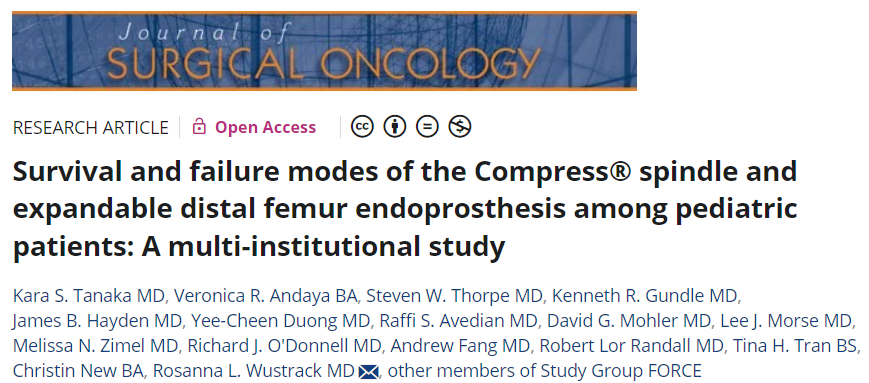 [41]TanakaKS,AndayaVR,ThorpeSW,®spindleandexpandabledistalfemuroprosthesisamongpediatricpatients:Amulti-institutionalstudy[J].Journalofsurgicaloncology,2023,127(1):148-58.