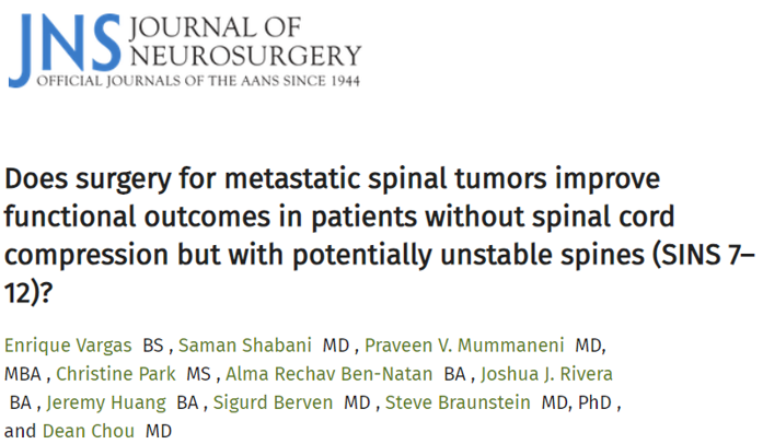 [74]VargasE,ShabaniS,MummaneniPV,patientswithoutspinalcordcompressionbutwithpotentiallyunstablespines(SINS7-12)?[J].JNeurosurgSpine,2023,39(2):287-94.