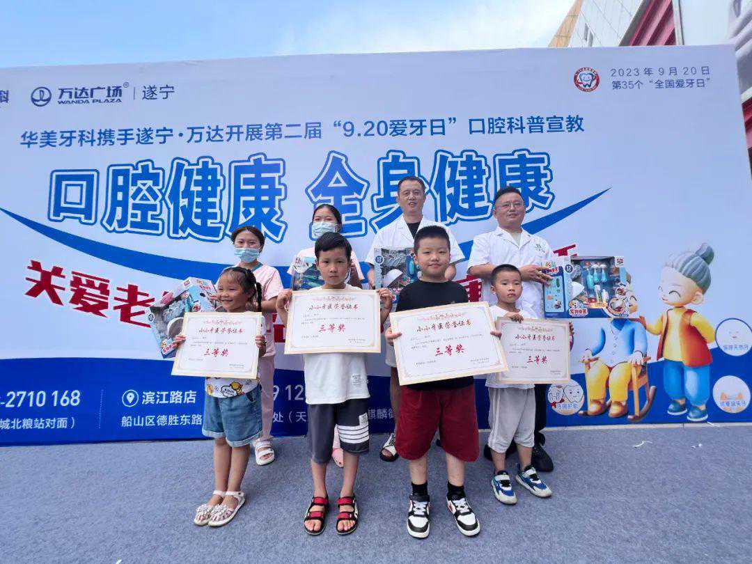 在寓教于乐中,两个小时的活动很快结束,华美牙科的医生们为每一位小朋友颁发了“小小牙医”荣誉证书和精美伴手礼,同时按照几轮比赛环节得分评出了本次活动的一、二、三等奖,为获奖者颁发了获奖证书和奖品。