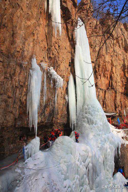 第二天早晨,道士走出洞外向四周一瞧,崖畔青松翠,瀑布流水清;群山绿油油,百鸟唱林中;野花遍地开,时时送春风。不禁叹道:“宝地!真是宝地!”道士再仔细一看:那瀑布从上落在崖下的石台上,溅起层层浪花,真如一盆盛开的白莲花,顺着阳光望去,雾气迢迢,随着太阳的转移,彩虹绕着莲花而变幻,到了数九寒冬,崖上的水落在崖下的石台上,滴水成冰,目积月累,形成了一座银光闪闪的冰柱,望去恰似一座自玉雕成的塔啊!