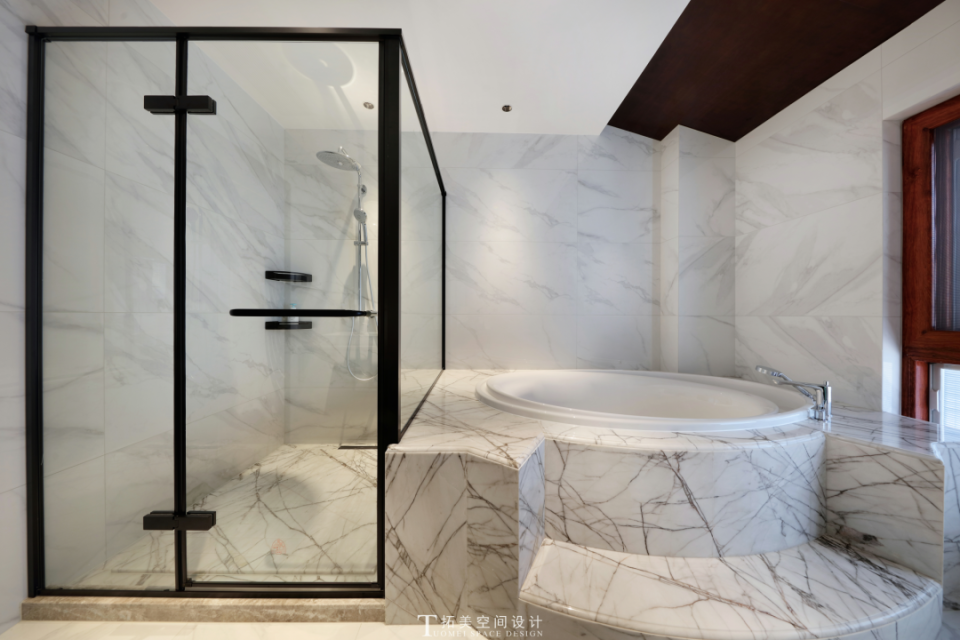 配套卫生间考虑了布局的功能性,将空间的利用率最大化。同时用休闲时尚的色调与层次丰富的顶面设计,突出空间的关怀与温度。简约的格调、写意的线条、清新的色彩,加上块面的现代化表达,营造出自然的诗意与独特的风雅。