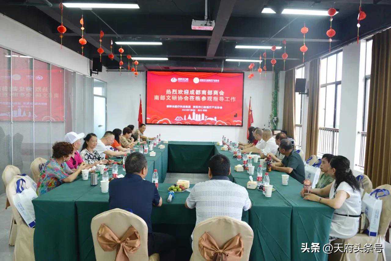 7月8日,成都南部商会顾问主席团成员马会元主席、商会会长李晓东、执行会长宋玉田、监事会监事王红梅、秘书长杜玉蓉一行,与南部县老年文化艺术研究协会共同赶赴资阳中国牙谷,参观学习华光集团及资阳市口腔医疗产业协会的成功经验。