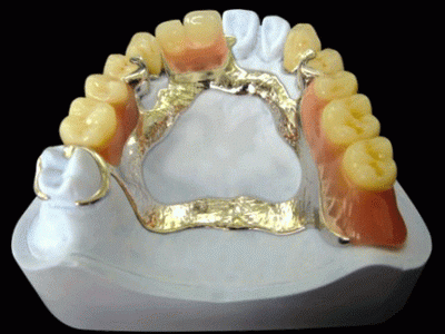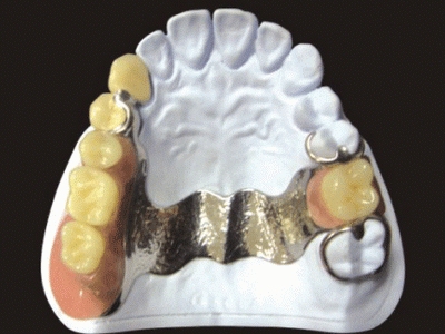缺牙比较多,可以选择这种铸造钢托的可摘活动义齿,价格低廉,容易清洗。