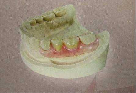 适合于前牙区过渡性义齿修复,无卡环设计美观固位好,因对牙龈有压迫刺激不宜长期使用。