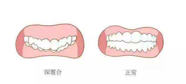 即咬合过深。正常的牙齿咬合是上前牙盖过下前牙的距离不超过下前牙长度的1/3。而咬合过深简单的说就是上牙完全咬合到了下牙的唇。