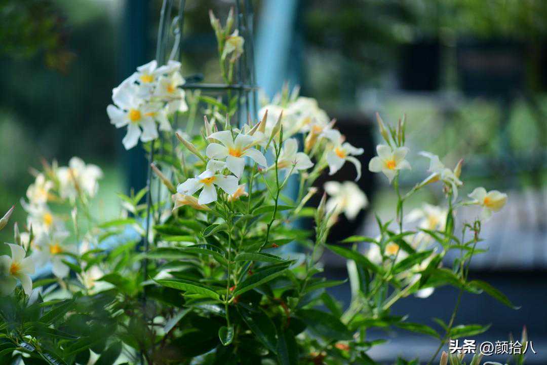 河边的水汽充足,下午4点后就没有西晒太阳了,每天傍晚浇透水,花盆小,第二天又全部干透。这些应该都是这盆飘香藤不断开花的相关因素。