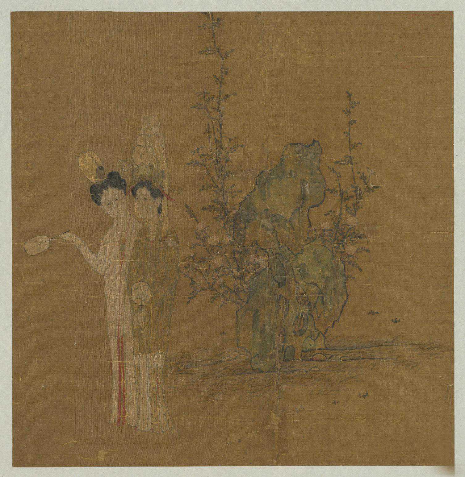 种种隐喻不管体现在绘画上还是文学上,无不加强了女性容貌之外的那种神态。譬如在陈洪绶的一幅《摹古册》里,画中只有一把女子用的纨扇,上面画着一枝菊花,扇的边沿栖着一只蝴蝶。可能是扇面上的花朵,或是纨扇本身散发的女性香气,把那只蝴蝶引来落在扇缘之上。著名艺术史家巫鸿将其形容成女性绘画中隐喻与“幻”之概念的联系。