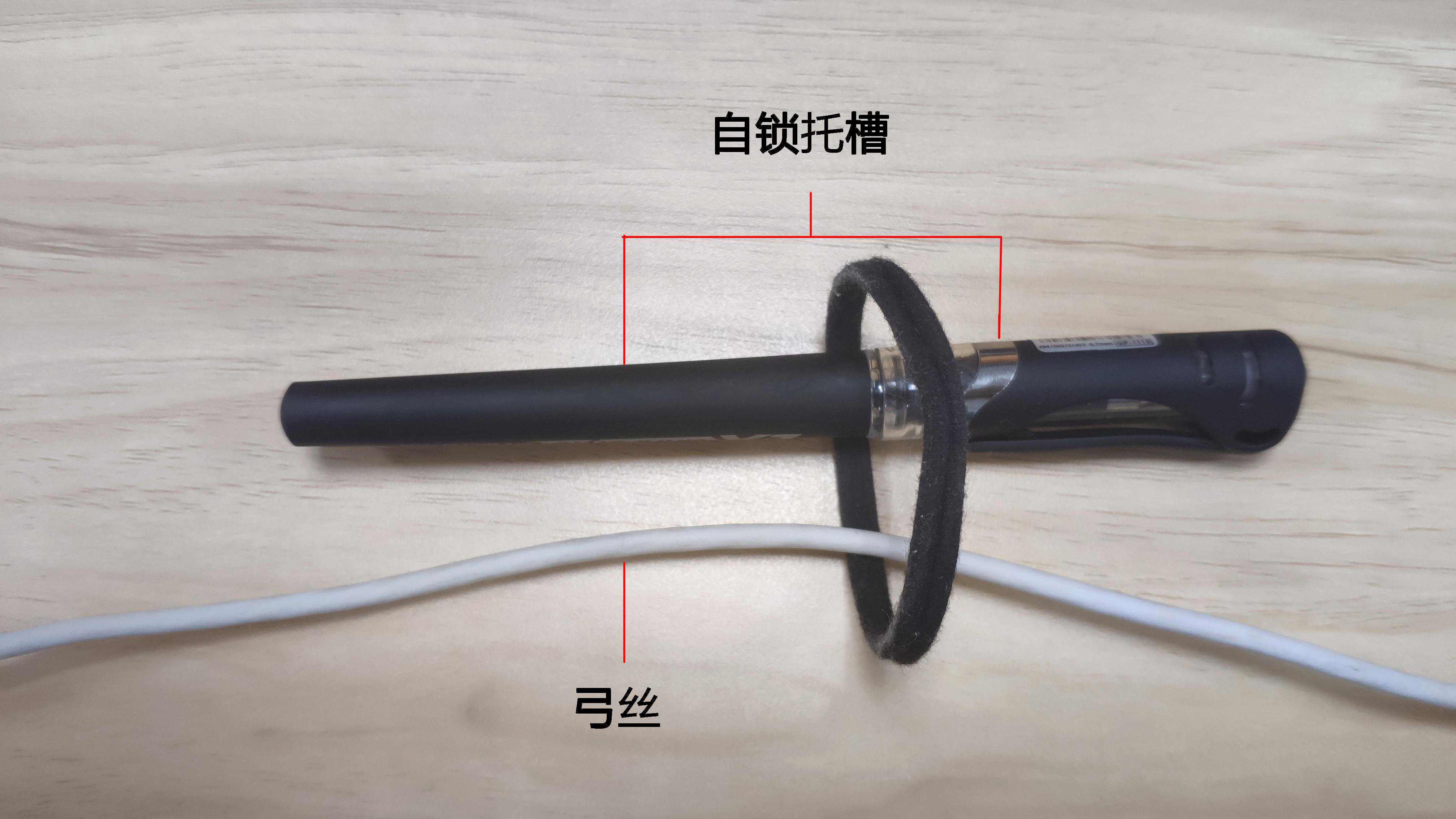 传统金属托槽矫正就像用绳子把一根铁丝和一支笔绑在一起,这时候你固定住笔,去拉铁丝,就会感觉到很大的阻力,拉不动:
