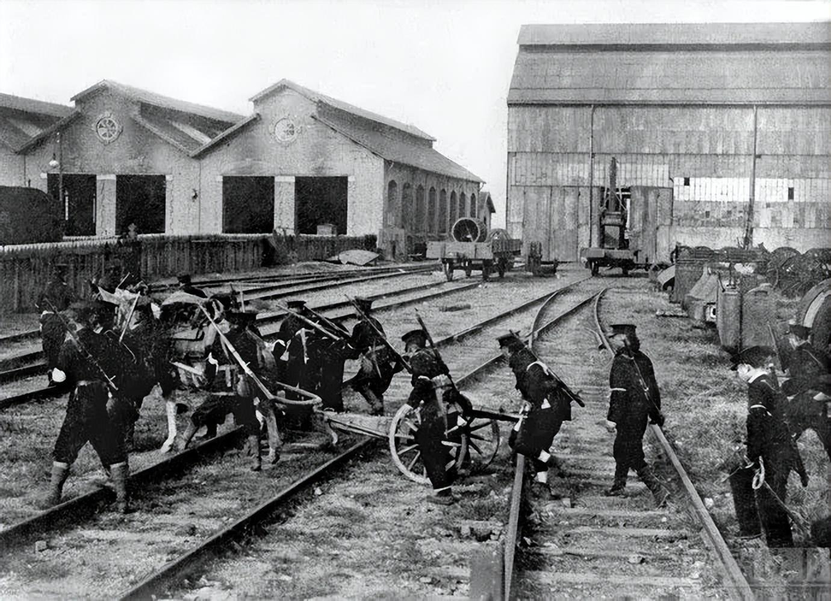 汉口革命军从铁轨上运送火炮