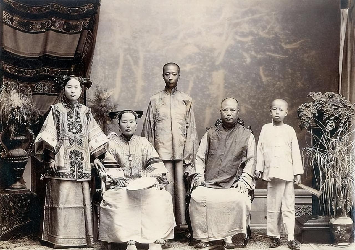 清朝时期一个有钱人家的全家福,这是一个有钱人家庭